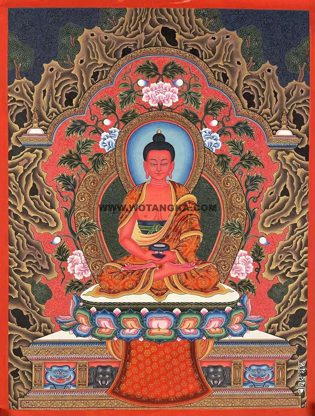 纽瓦立唐卡传世之作,纽瓦立风格来源于尼泊尔当地的原始民族纽瓦立族群。这个族群以家族传承的方式延续着这种唐卡的风格。最早的纽瓦立唐卡都是秘密绘制并由长辈口耳相传整个绘画的技艺,并采用最高级的天然矿物质颜料绘画,这种风格的唐卡一度风靡全世界,并被各个皇族收藏保存。现而今,纽瓦立的族群已减少到不足二百人,但是其中大部分的青壮年都继承了老一辈的技艺,由于画师的数量不多,所以每一张的纽瓦立唐卡都倍受所有人的青睐。释迦摩尼是佛陀教育的创始人。