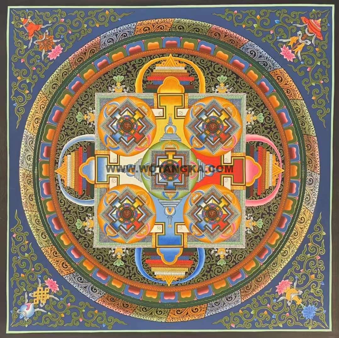 尼泊尔知名唐卡画师《时轮金刚坛城》唐卡手绘布本,采用24K真金描线,天然矿石颜料着色晕染,画工细腻,是一副难得一见的好唐卡作品。