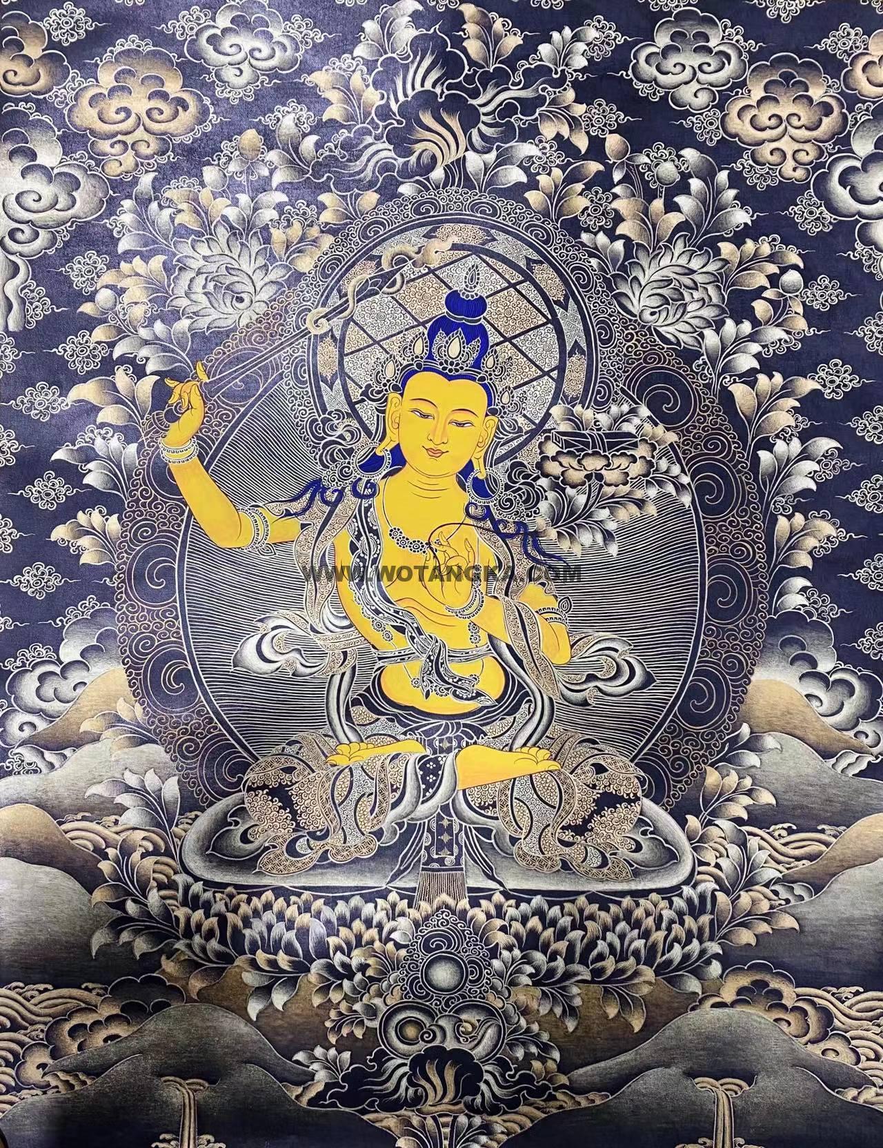 编号138-462004:黑金唐卡-文殊菩萨(60*45CM左右) | 沃唐卡www.WoTangKa.com