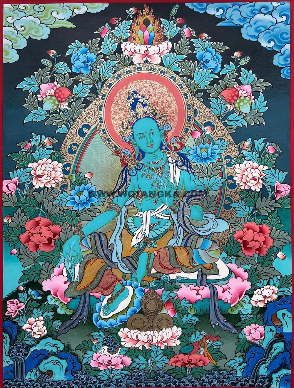 编号188-166489:彩绘唐卡-绿度母(50*35CM左右) | 沃唐卡www.WoTangKa.com