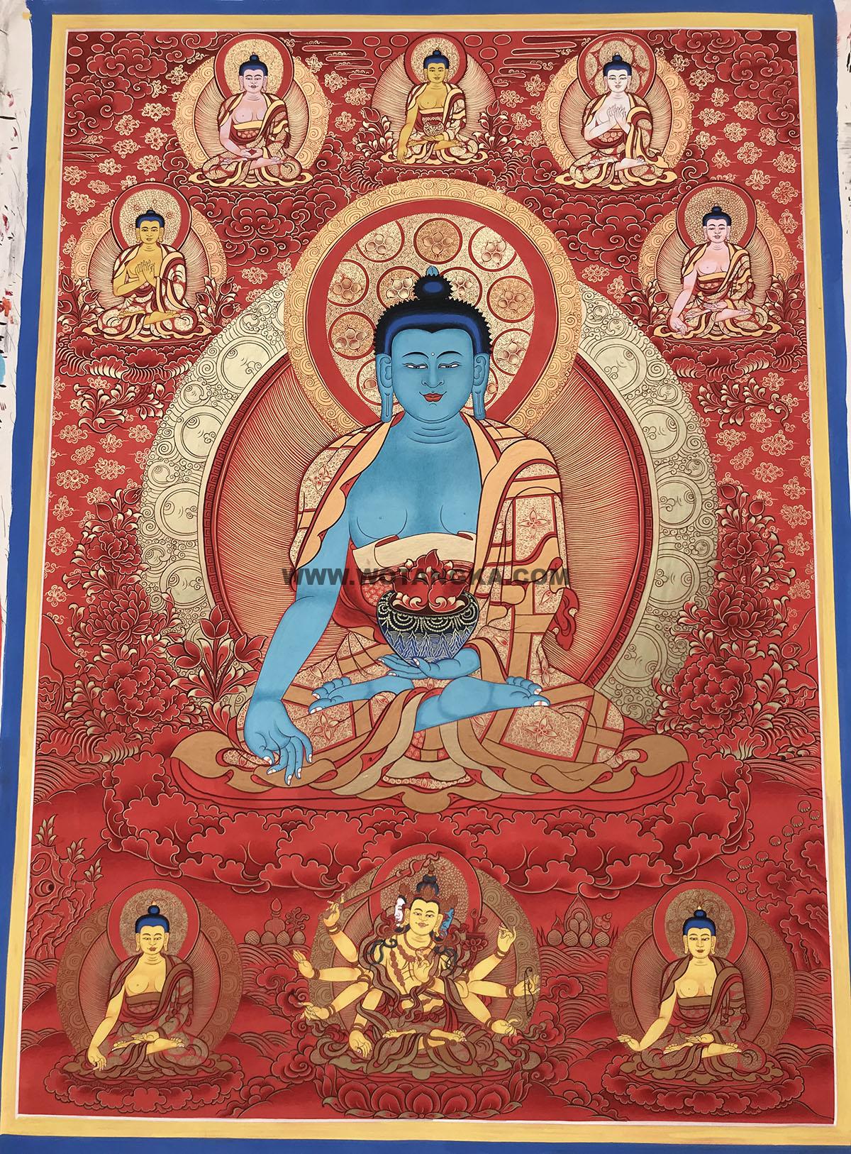 编号188-732927:红金唐卡-药师佛(100*70CM左右) | 沃唐卡www.WoTangKa.com