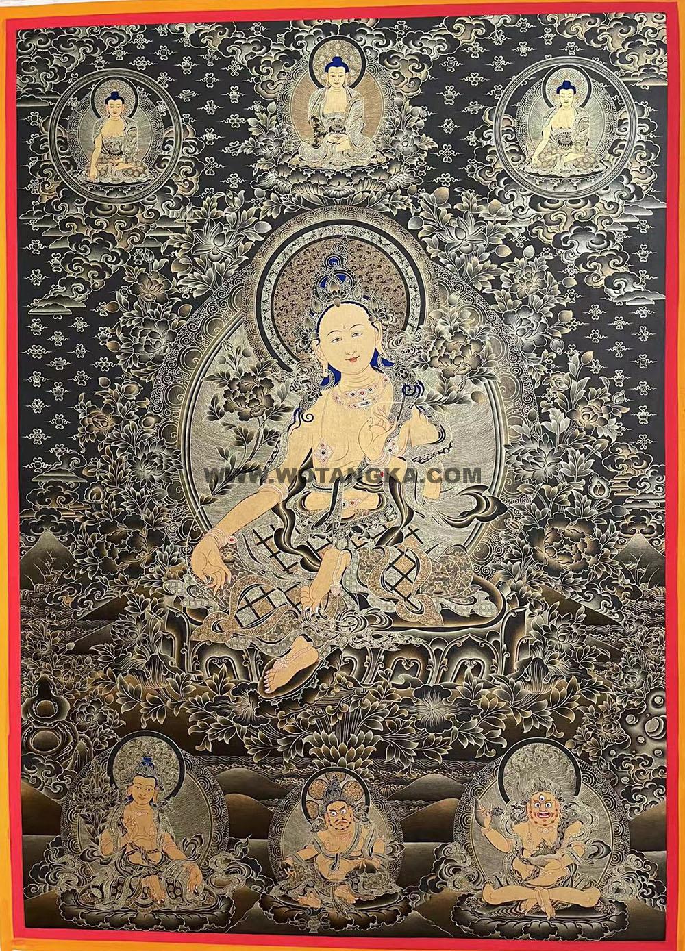 编号188-319594:黑金唐卡-绿度母(80*60CM左右) | 沃唐卡www.WoTangKa.com