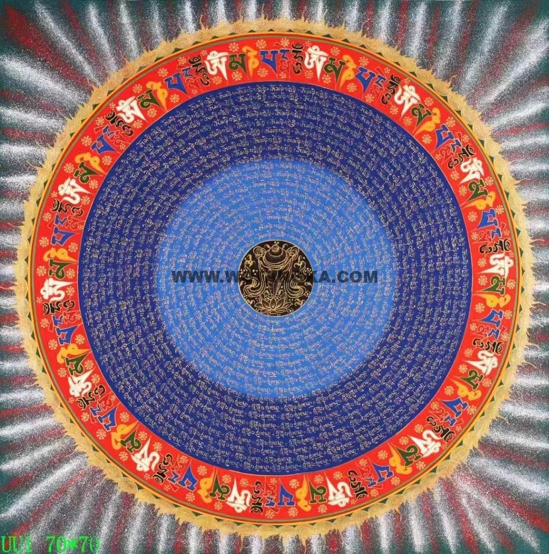 坛城象征宇宙本源,是圣坛的代表,挂与家里玄关之处,有镇宅辟邪的妖邪不入的作用,古代著名寺院皇宫都用此法门来镇宅辟邪,十分殊胜。喜欢不要错过。六字大明咒是观世音菩萨心咒,源于梵文中,此咒含有诸佛无尽的加持与慈悲,是诸佛慈悲和智慧的音声显现。能改变命运,修成幸福健康的人生。