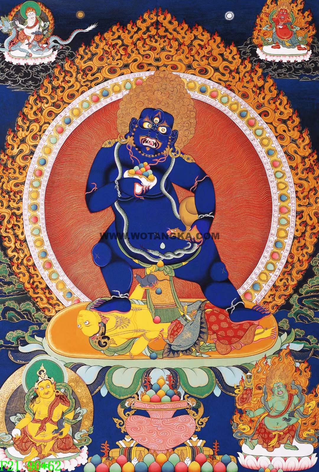 编号138-656560:彩绘唐卡-黑财神·五方财神(90*62CM左右) | 沃唐卡www.WoTangKa.com