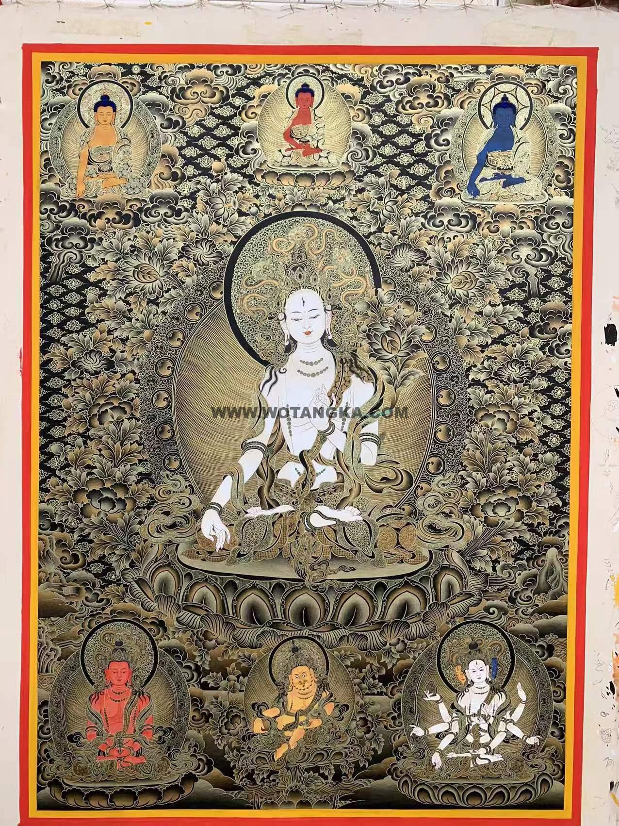 唐卡材质:白棉布、名贵矿石颜料、黄金等贵金属