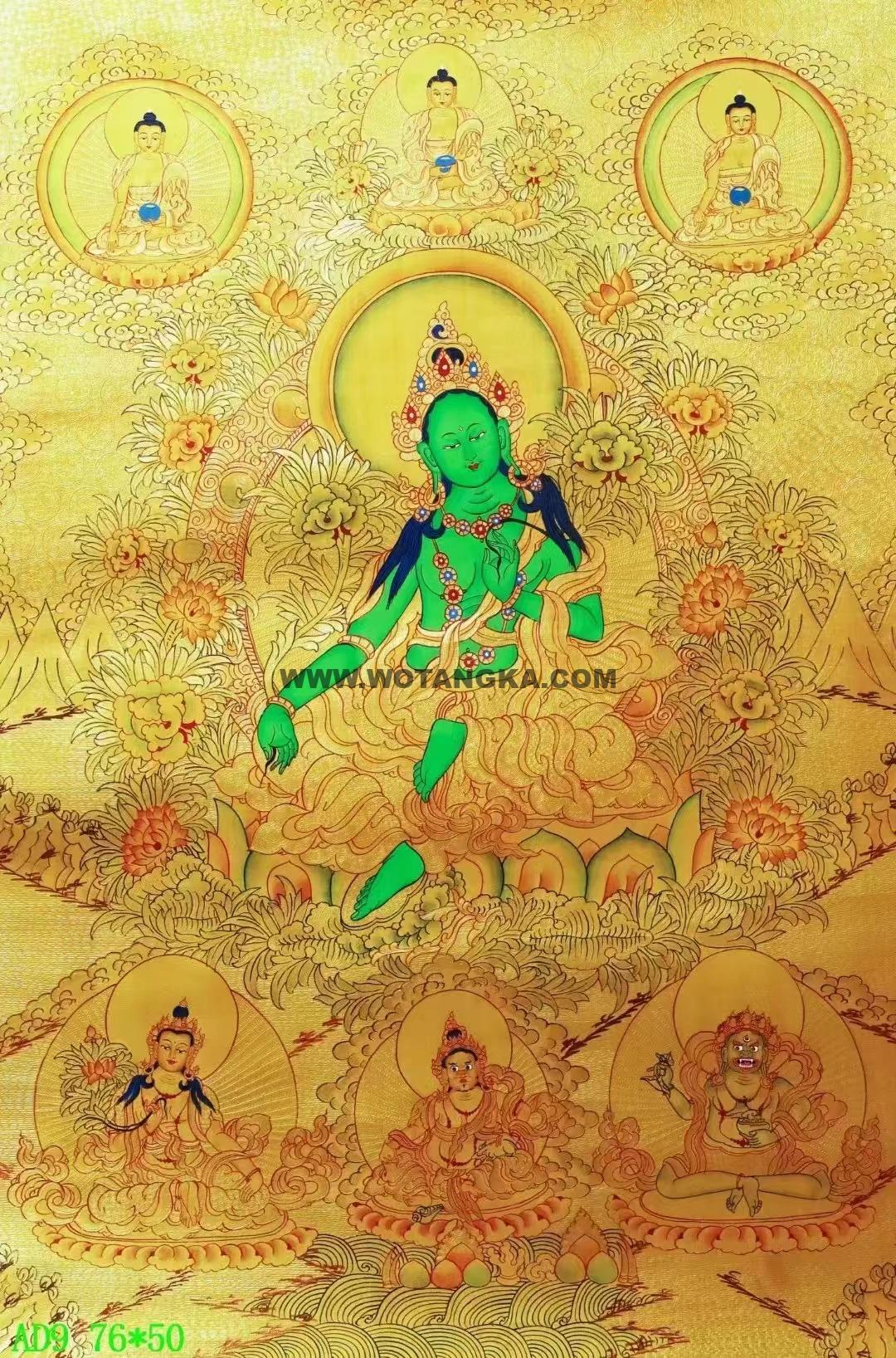 尼泊尔高端手绘金唐《绿度母》唐卡手绘布本。金箔唐卡是传统唐卡风格,有道是佛靠金装,传承唐卡文化技艺。此作品采用纯金箔玛瑙笔雕花錾刻,稀缺的矿石颜料上色完成,绘制周期漫长,十分难得,喜欢的朋友不要错过。