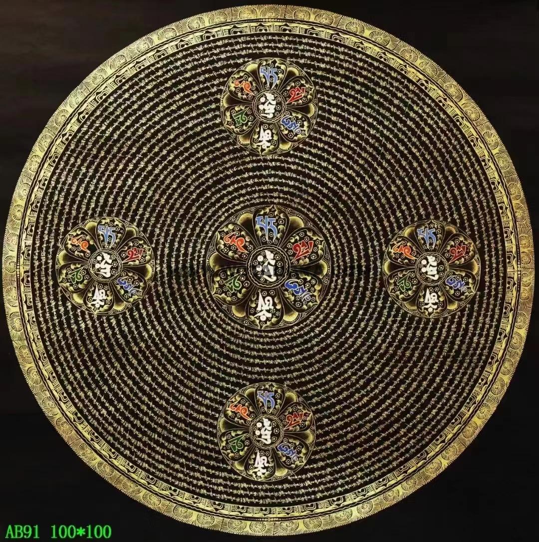 《六字真言坛城》唐卡是高端会所公司豪宅,背景墙,镇宅首选。坛城象征宇宙本源,是圣坛的代表,挂与家里玄关之处,有镇宅辟邪的妖邪不入的作用,古代著名寺院皇宫都用此法门来镇宅辟邪,十分殊胜。喜欢不要错过。六字大明咒是观世音菩萨心咒,源于梵文中,此咒含有诸佛无尽的加持与慈悲,是诸佛慈悲和智慧的音声显现。能改变命运,修成幸福健康的人生。