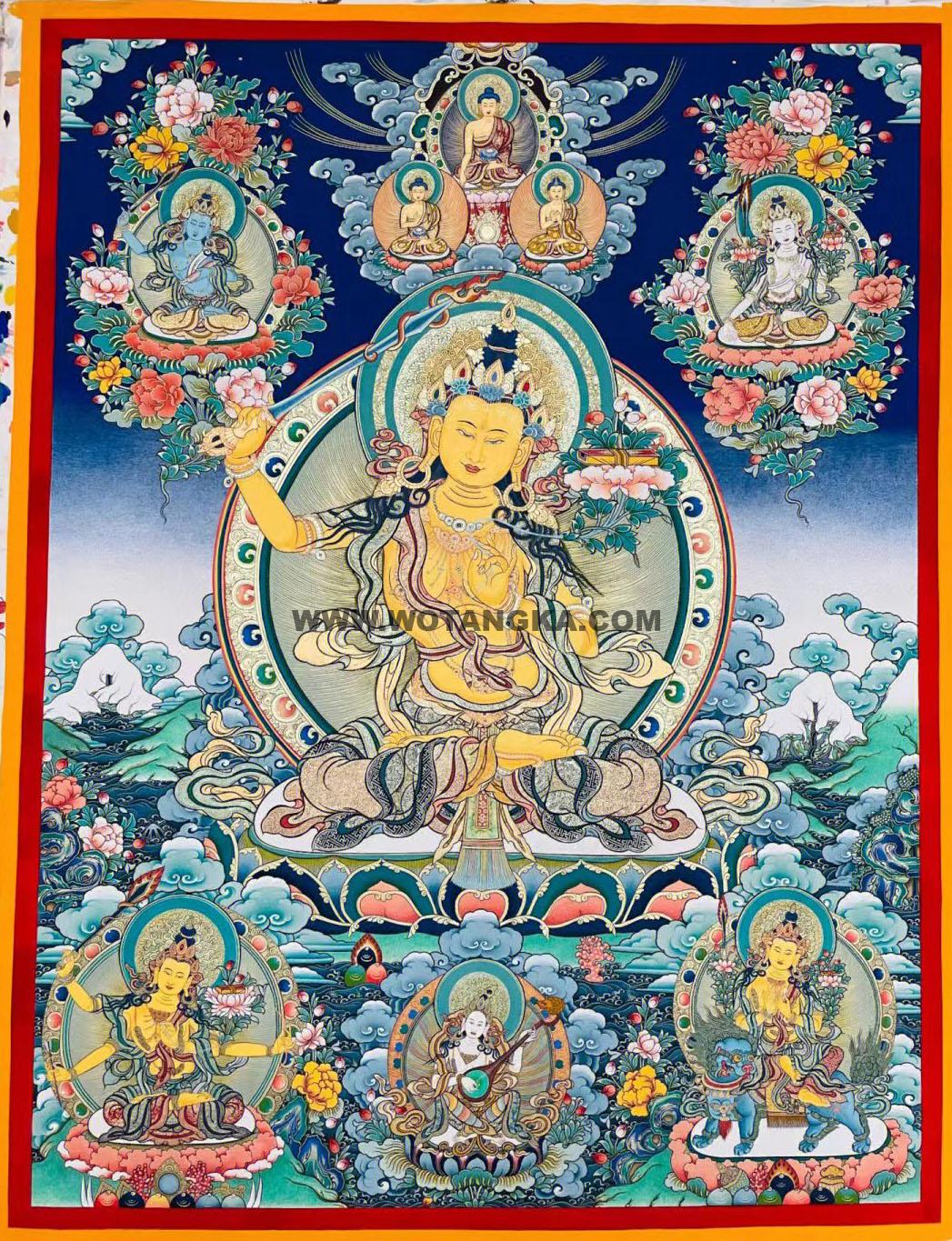 编号188-835486:彩绘唐卡-文殊菩萨·五部文殊(80*60CM左右) | 沃唐卡www.WoTangKa.com