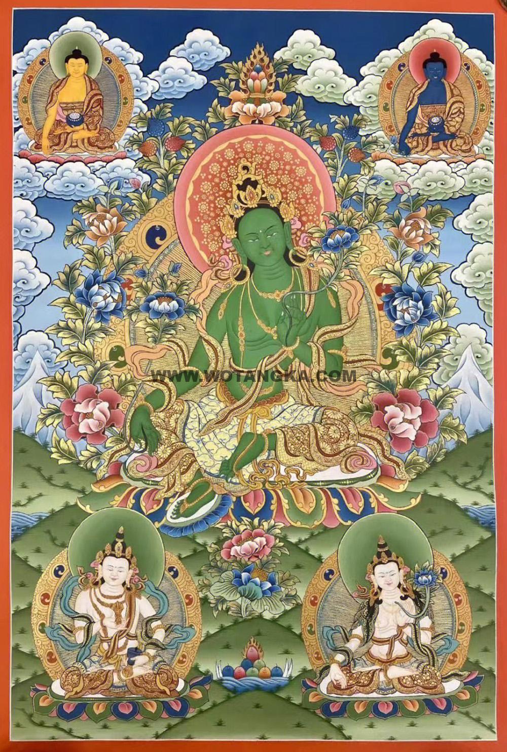 中国唐卡艺术作品中的【绿度母】唐卡手绘布本,热贡知名画师拉藏·画院出品,收藏供奉不要错过。作品主尊宝相传神, 采用天然矿石晕染,纯金描线,画工细腻,殊胜,精美、风格富丽,采用24K真金描绘,画工细腻,开脸殊胜,是一副难得一见的好唐卡作品。