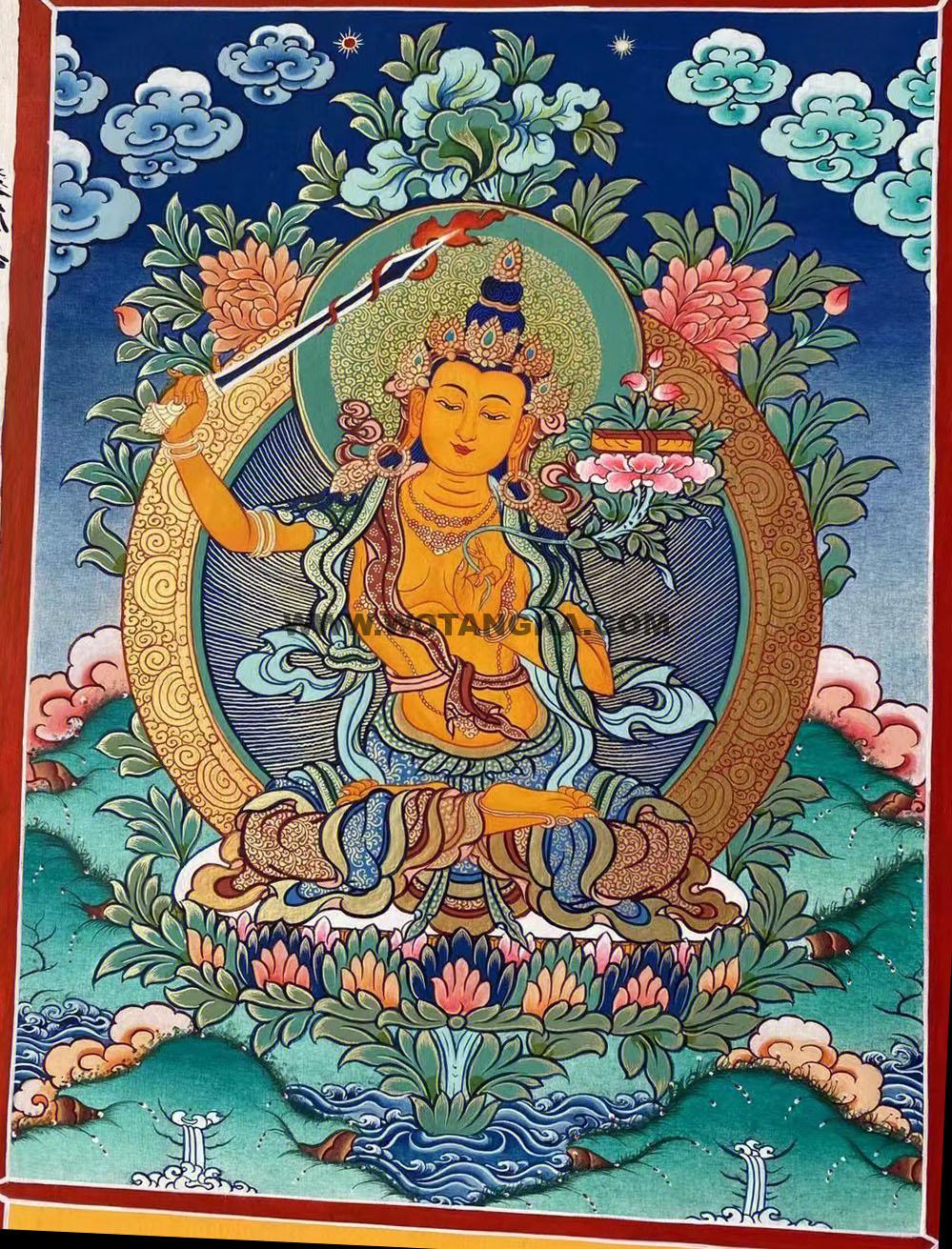 编号188-522360:彩绘唐卡-文殊菩萨(30*20CM左右) | 沃唐卡www.WoTangKa.com