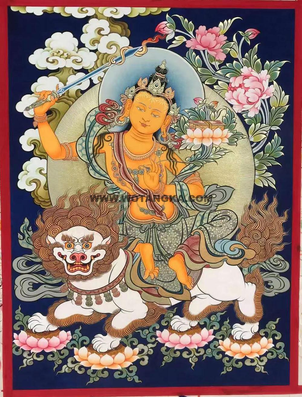编号188-862542:彩绘唐卡-文殊菩萨(60*45CM左右) | 沃唐卡www.WoTangKa.com