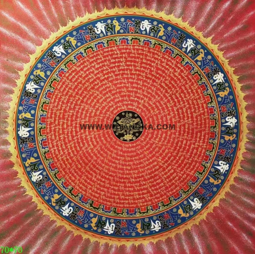 坛城象征宇宙本源,是圣坛的代表,挂与家里玄关之处,有镇宅辟邪的妖邪不入的作用,古代著名寺院皇宫都用此法门来镇宅辟邪,十分殊胜。喜欢不要错过。六字大明咒是观世音菩萨心咒,源于梵文中,此咒含有诸佛无尽的加持与慈悲,是诸佛慈悲和智慧的音声显现。能改变命运,修成幸福健康的人生。