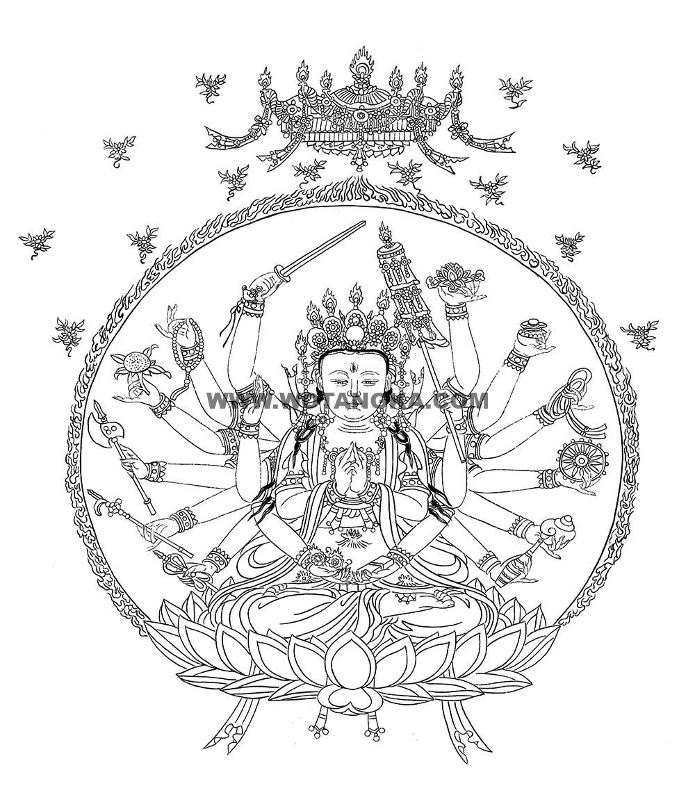 沃唐卡-唐卡白描线稿编号RD80462:千手观音