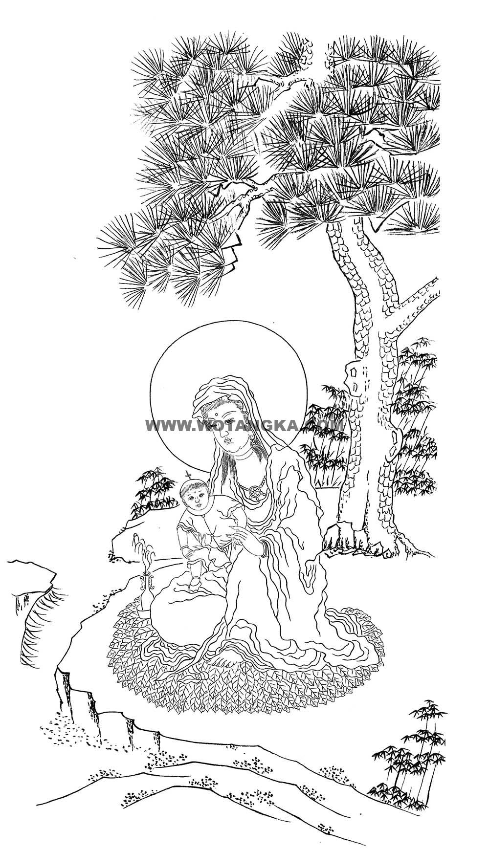 沃唐卡-唐卡白描线稿编号RD15314:送子观音