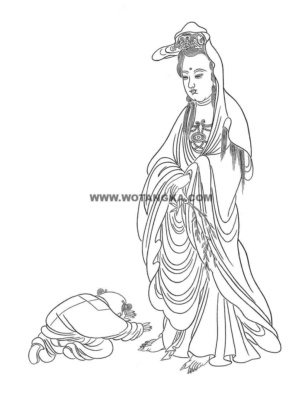 沃唐卡-唐卡白描线稿编号RD11295:送子观音