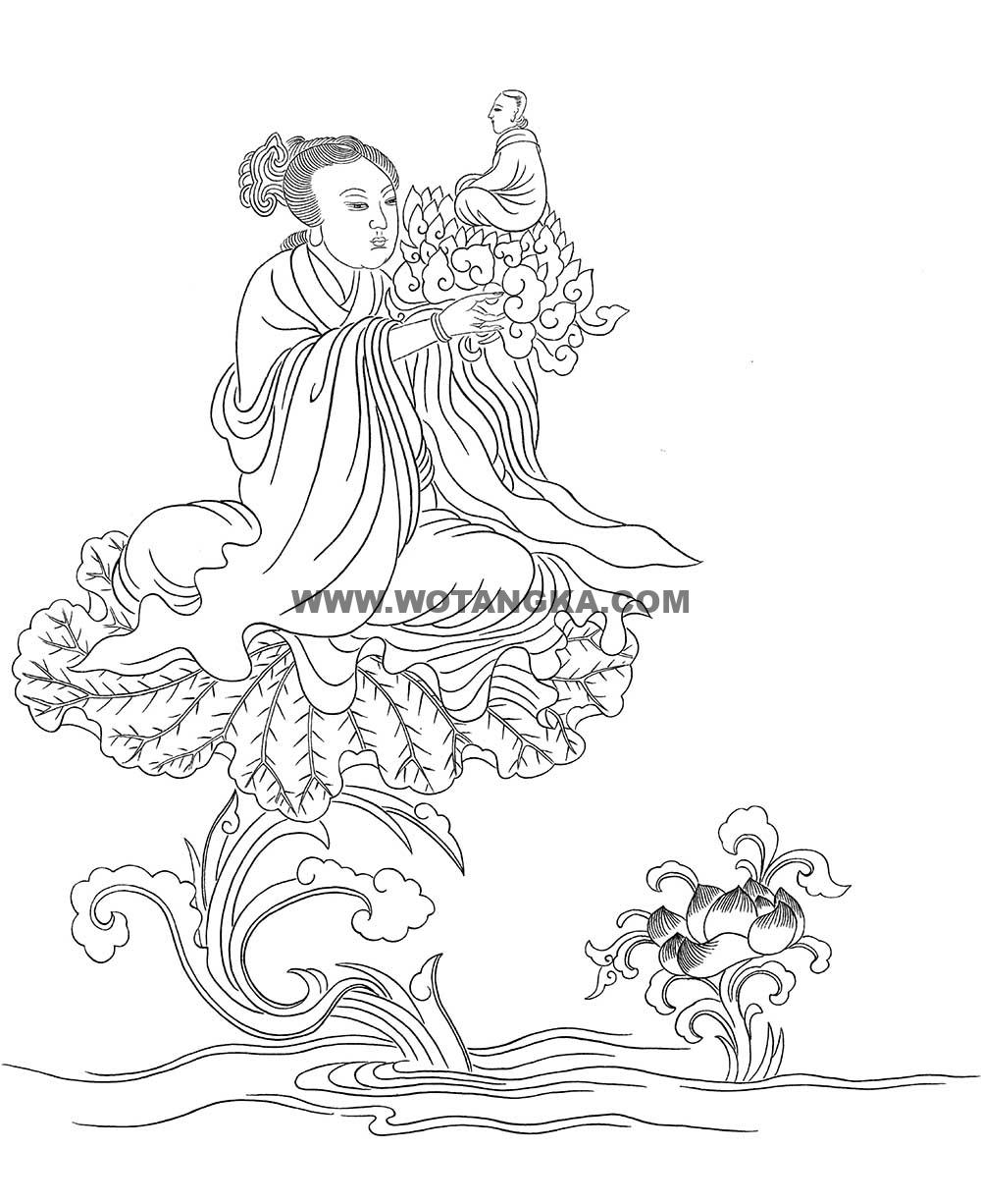 沃唐卡-唐卡白描线稿编号RD45162:送子观音