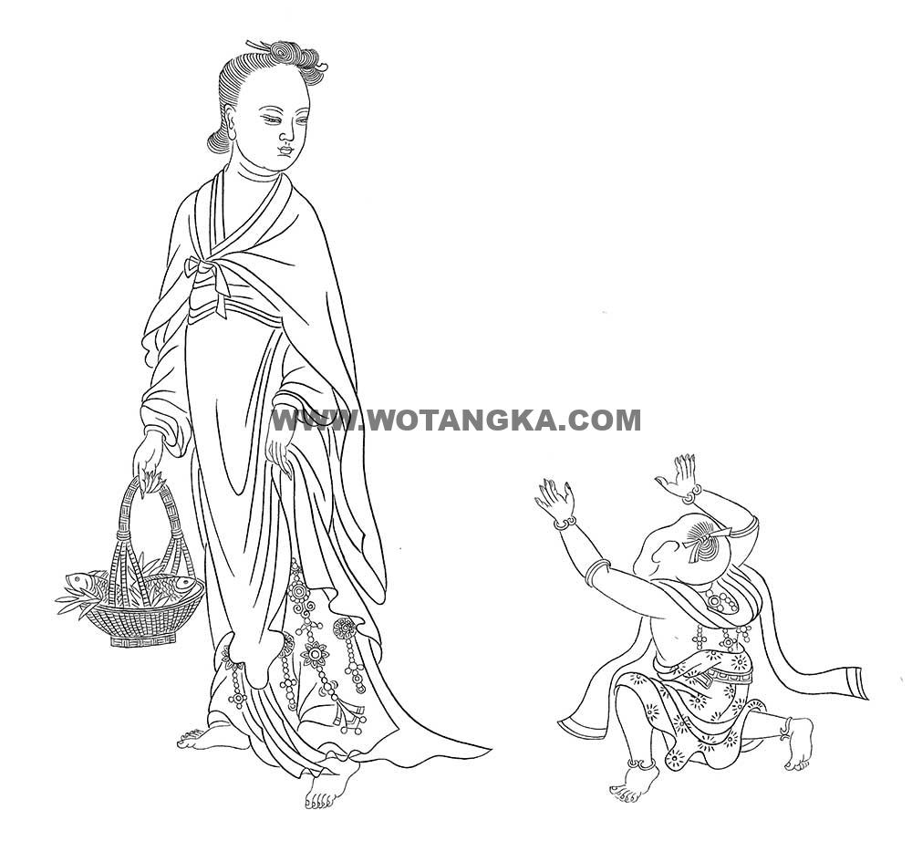 沃唐卡-唐卡白描线稿编号RD41766:送子观音