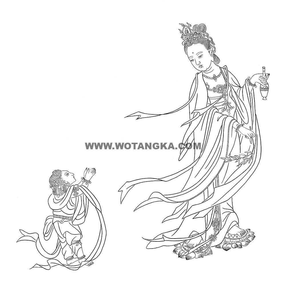 沃唐卡-唐卡白描线稿编号RD54650:送子观音