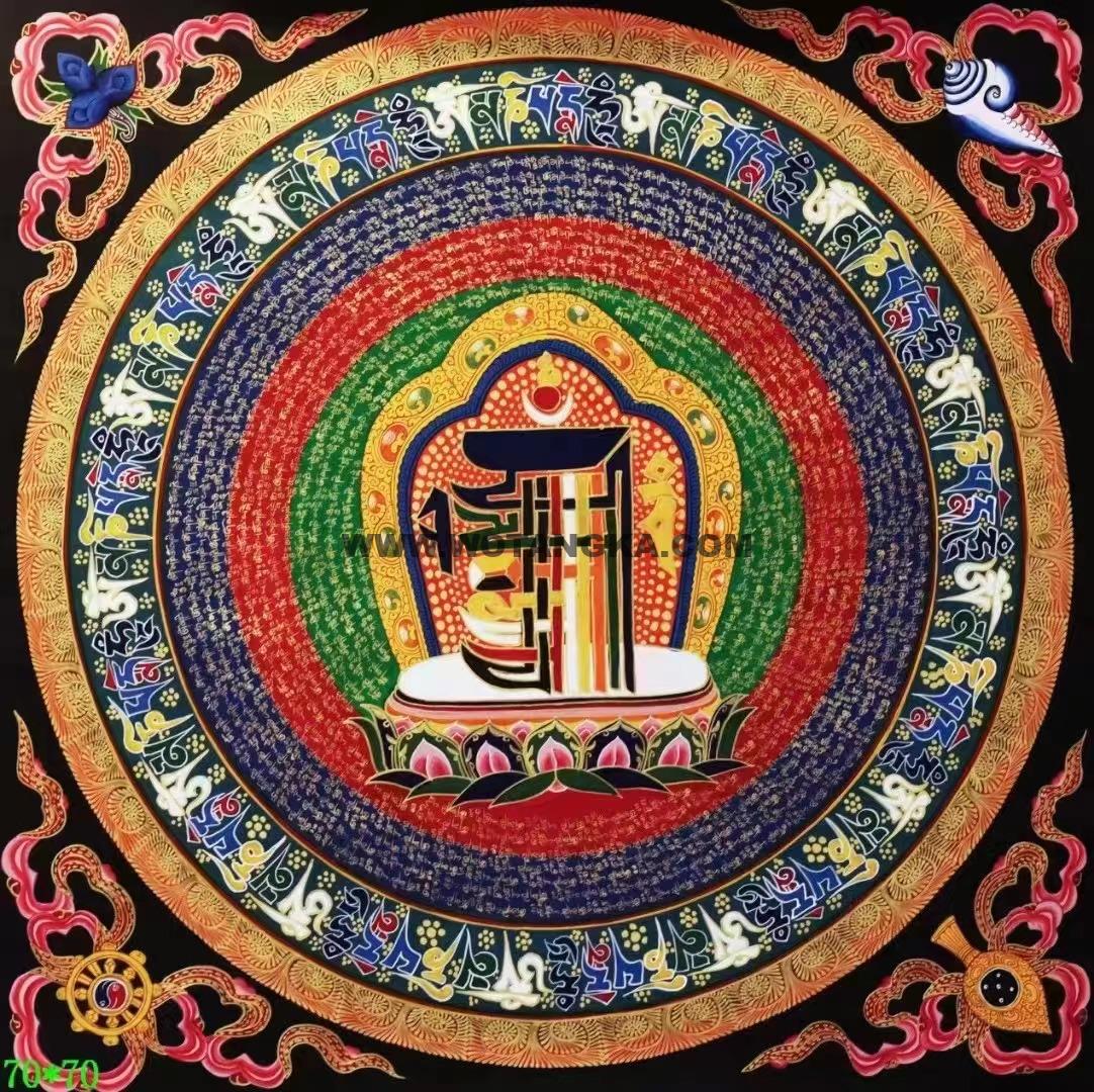 十相自在六字真言经文坛城唐卡坛城, 【十相自在坛城】唐卡手绘布本。采用真金描线,天然矿石颜料着色晕染,画工细腻,精致,精品不要错过。