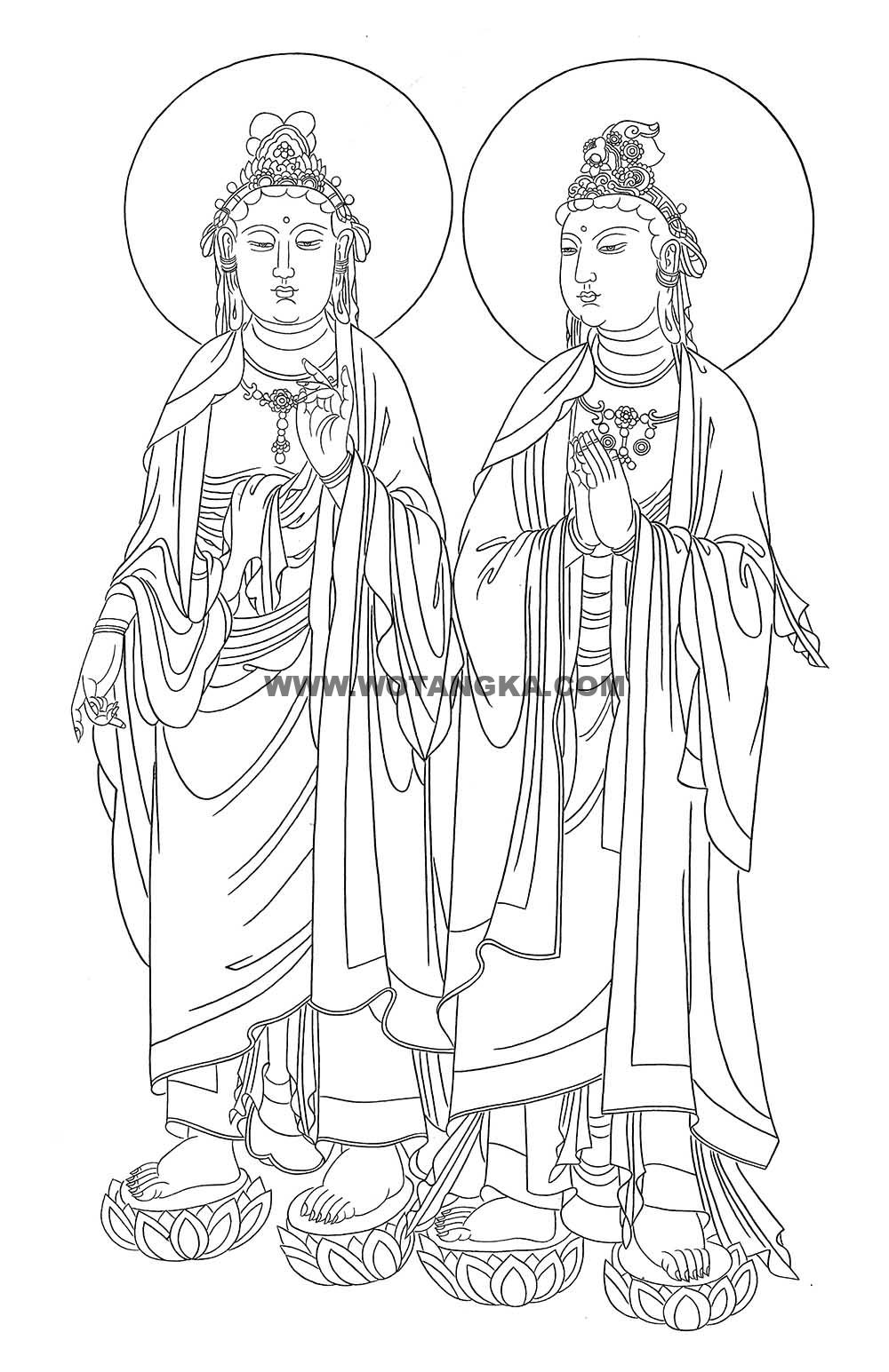 沃唐卡-唐卡白描线稿编号RD84944:观音菩萨