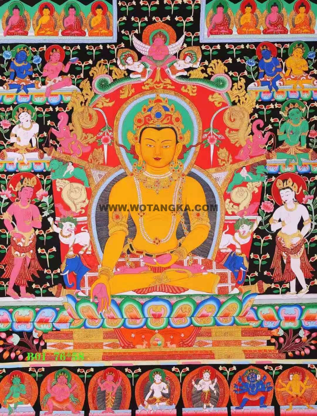 尼泊尔喇嘛力作【宝生如来】作品采用金粉混合矿物颜料纯手绘而成。作品主尊宝相传神,布图精美、画工非常的细腻,严格的遵照佛经的度量仪轨如法绘制,期待有缘人。