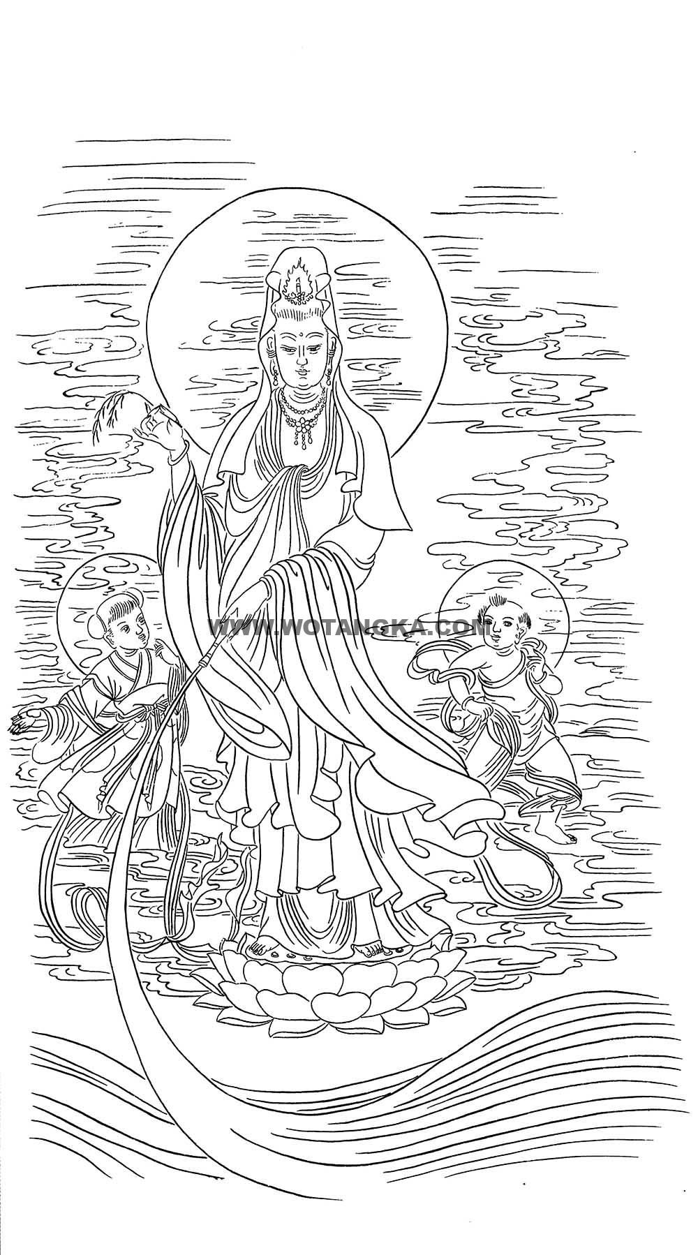 沃唐卡-唐卡白描线稿编号RD37454:观音菩萨