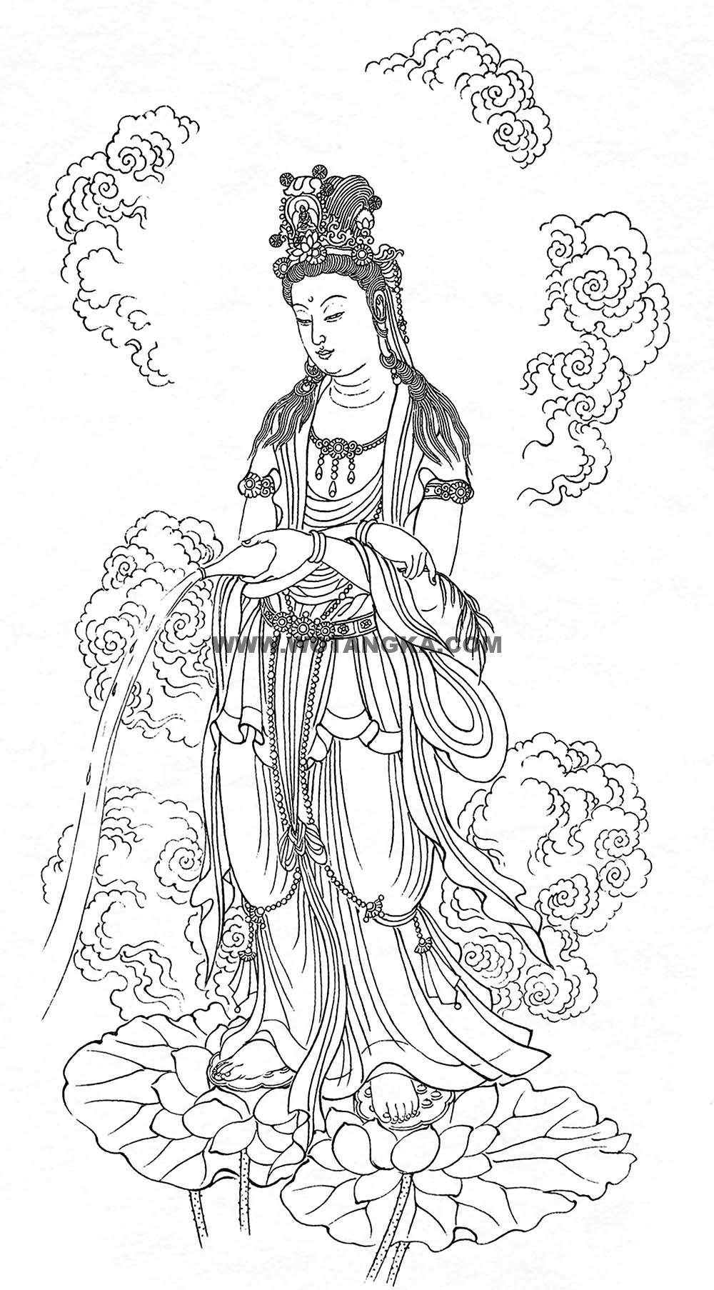 沃唐卡-唐卡白描线稿编号RD72934:洒水观音
