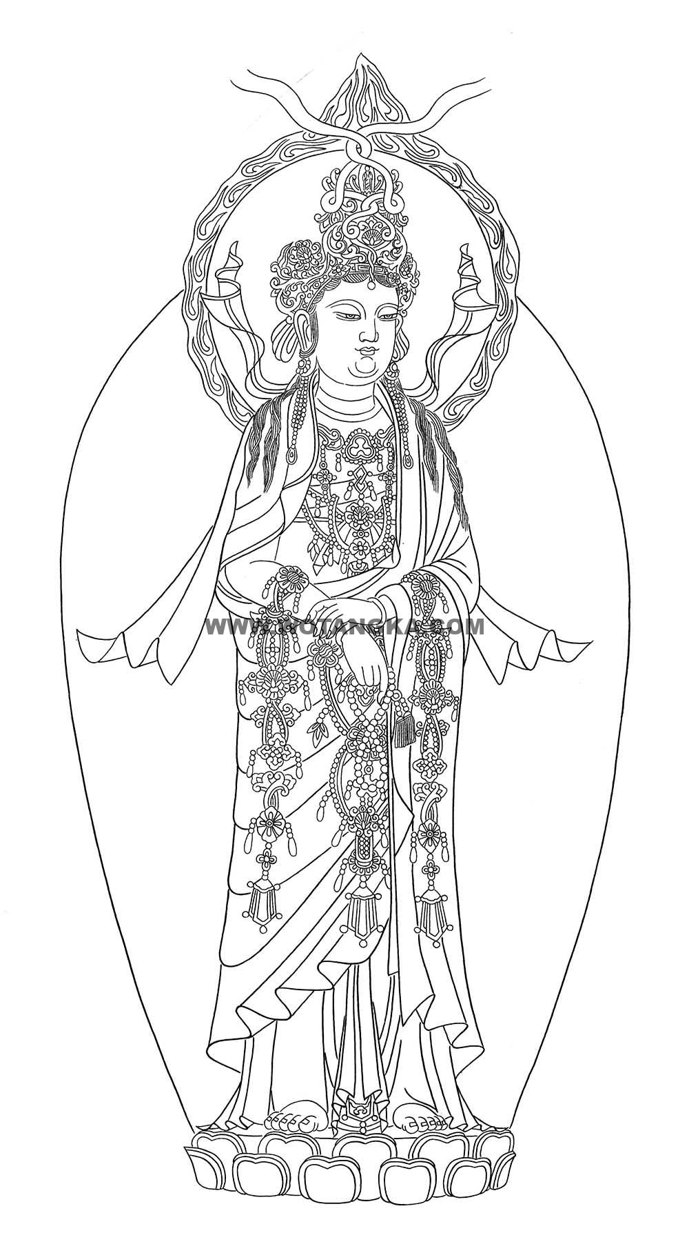 沃唐卡-唐卡白描线稿编号RD80938:圆光观音