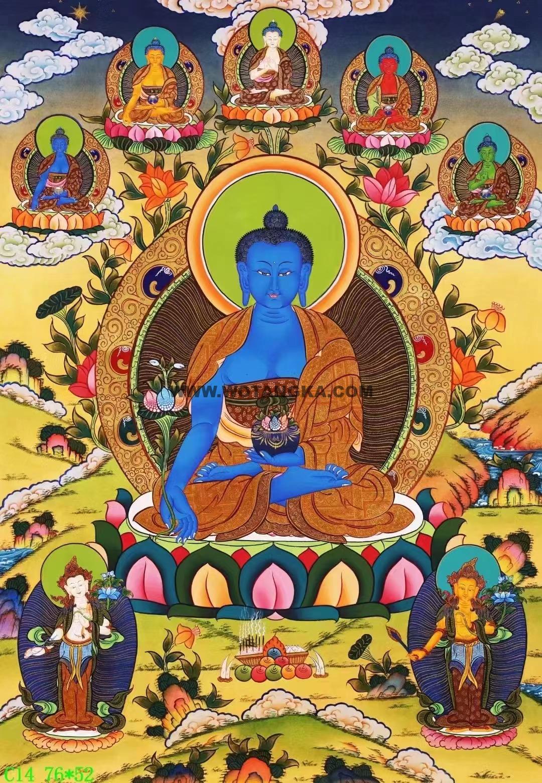 药师佛全称药师琉璃光如来,也有人称大医王佛、医王善逝或消灾延寿药师佛,为东方琉璃净土的教主。为药师本用以比喻能治众生贪、瞋、痴的医师。在中国佛教一般用以祈求消灾延寿。七佛药师即七尊药师。又作七躬医王。藏历初八,药师佛节日。药师七佛住于东方去此四恒河沙乃至十恒河沙世界,曾发大弘誓愿要救拔五浊恶世众生苦恼。佛陀的悲愿无量无边,七佛之弘深本愿不可言尽。