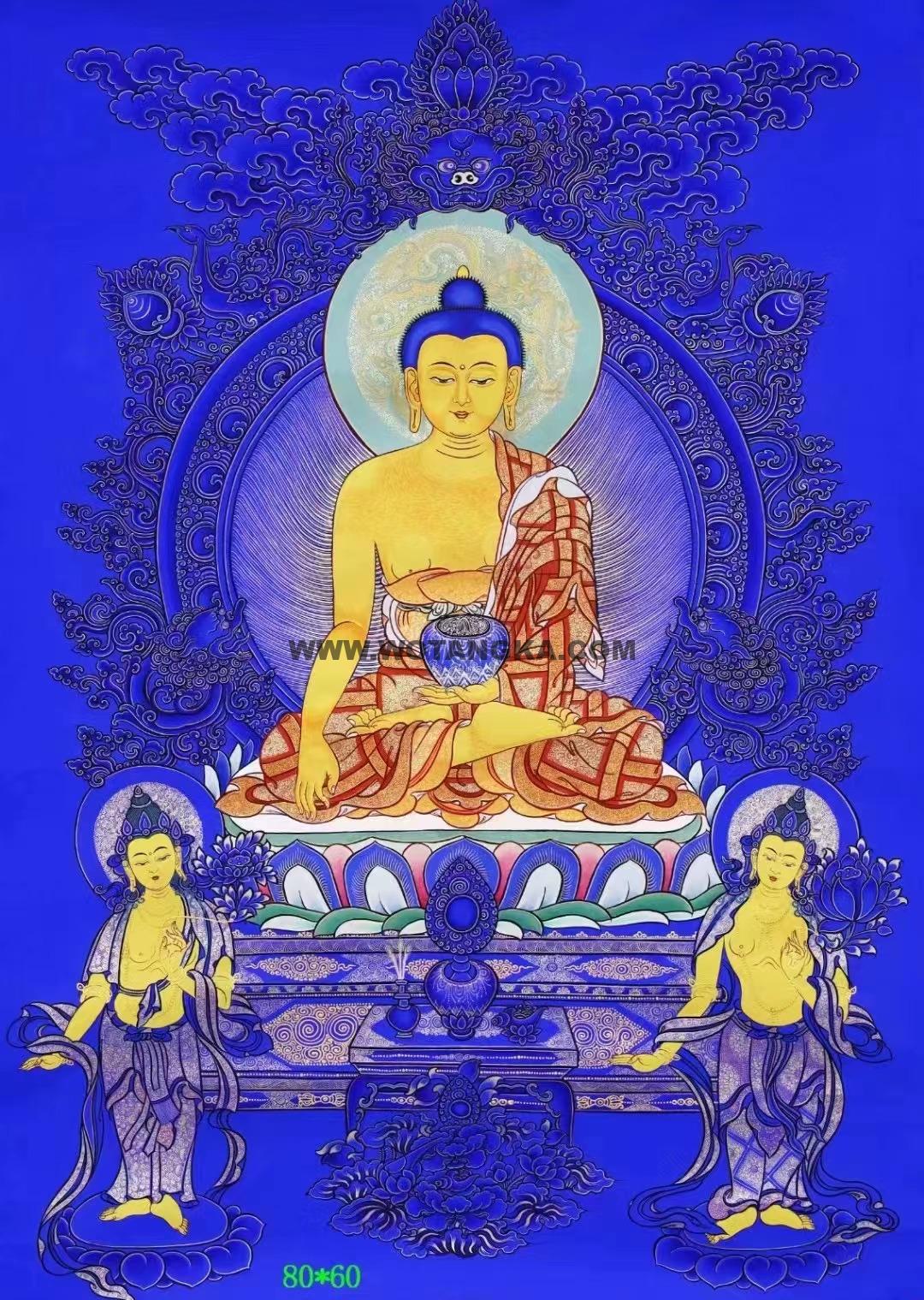 中国唐卡艺术作品中的【释迦牟尼佛】唐卡手绘布本,热贡知名画师出品,收藏供奉不要错过。作品主尊宝相传神, 采用天然矿石晕染,纯金描线,画工细腻,殊胜,精美、风格富丽,采用24K真金描绘,画工细腻,开脸殊胜,是一副难得一见的好唐卡作品。
