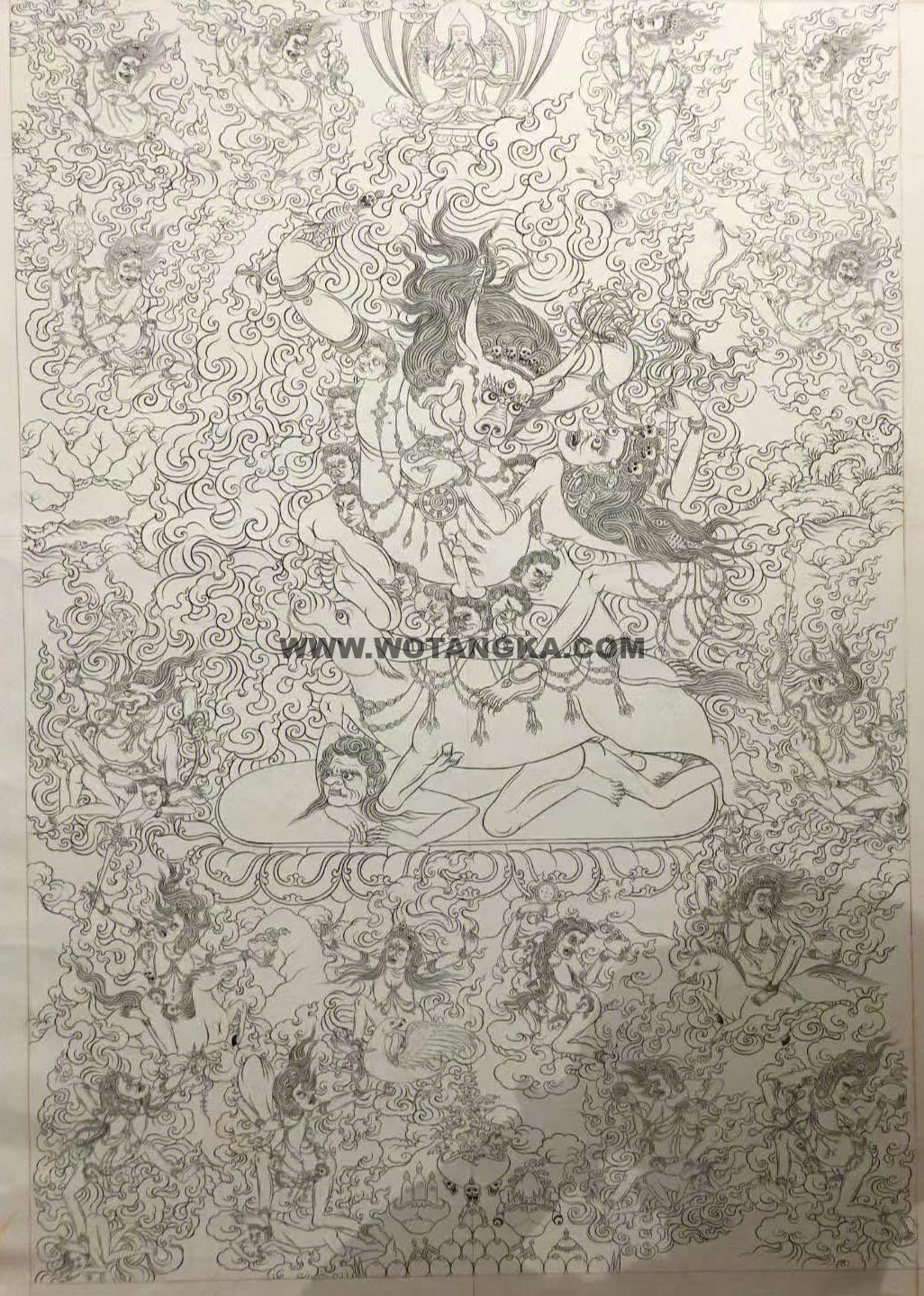沃唐卡-唐卡白描线稿编号RD46438:外阎罗护法