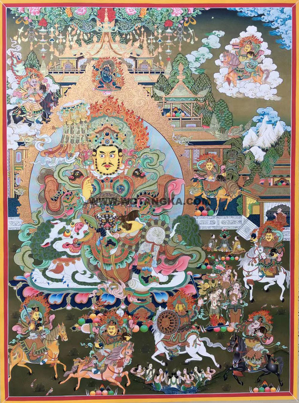 编号188-917054:彩绘唐卡-财宝天王·八马财神(100*70CM左右) | 沃唐卡www.WoTangKa.com