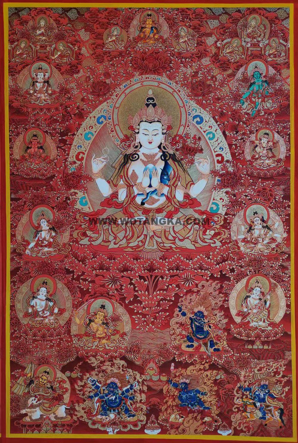 编号188-126955:红金唐卡-四臂观音(100*70CM左右)