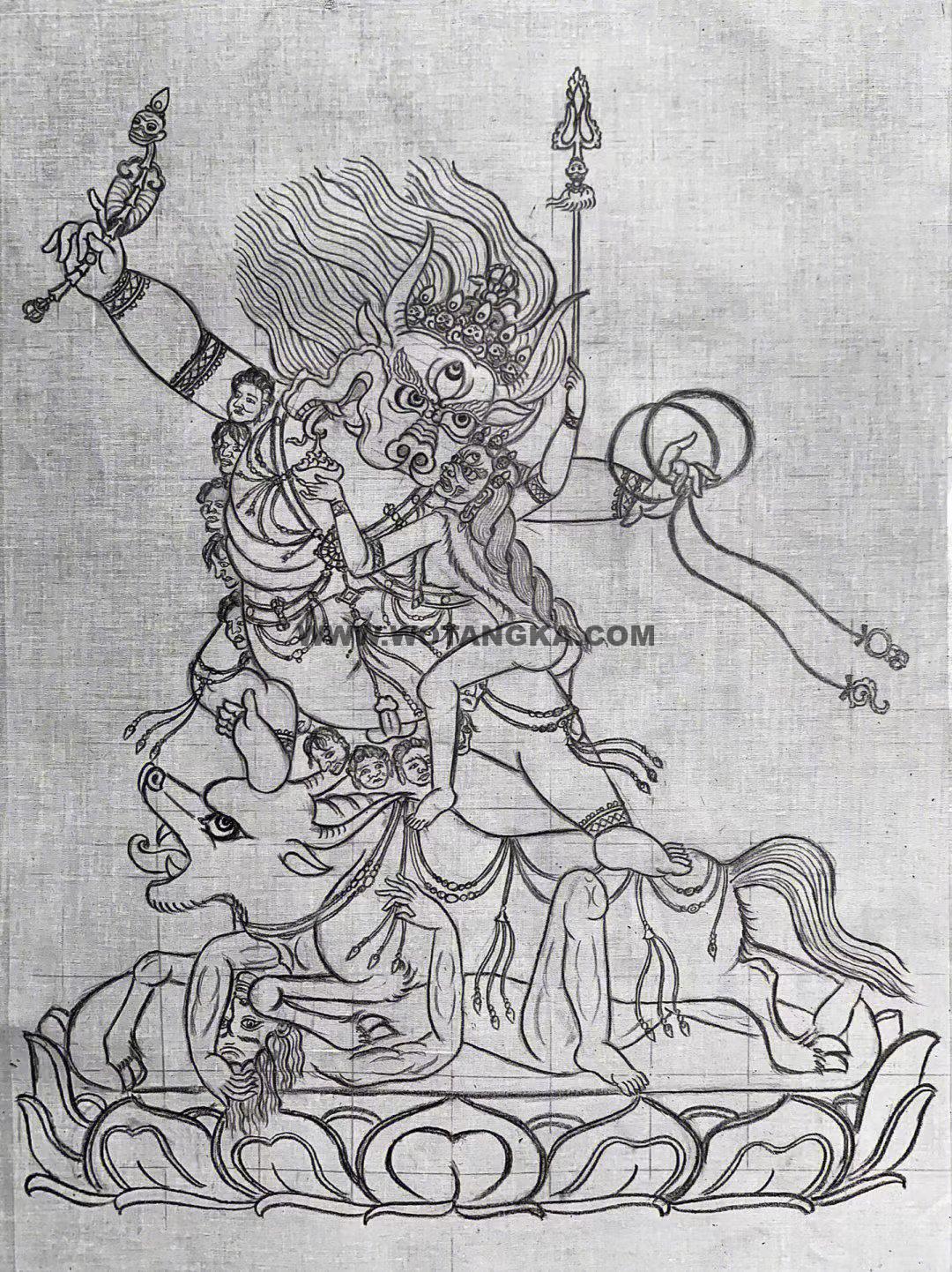 沃唐卡-唐卡白描线稿编号RD86207:外阎罗护法