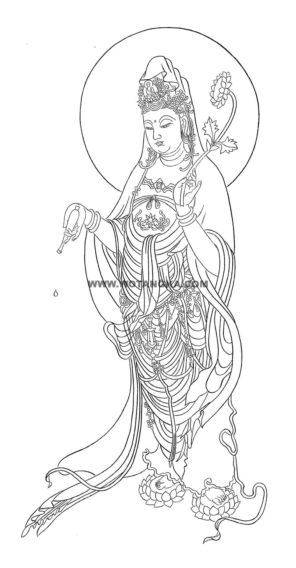 沃唐卡-唐卡白描线稿编号RD60758:洒水观音