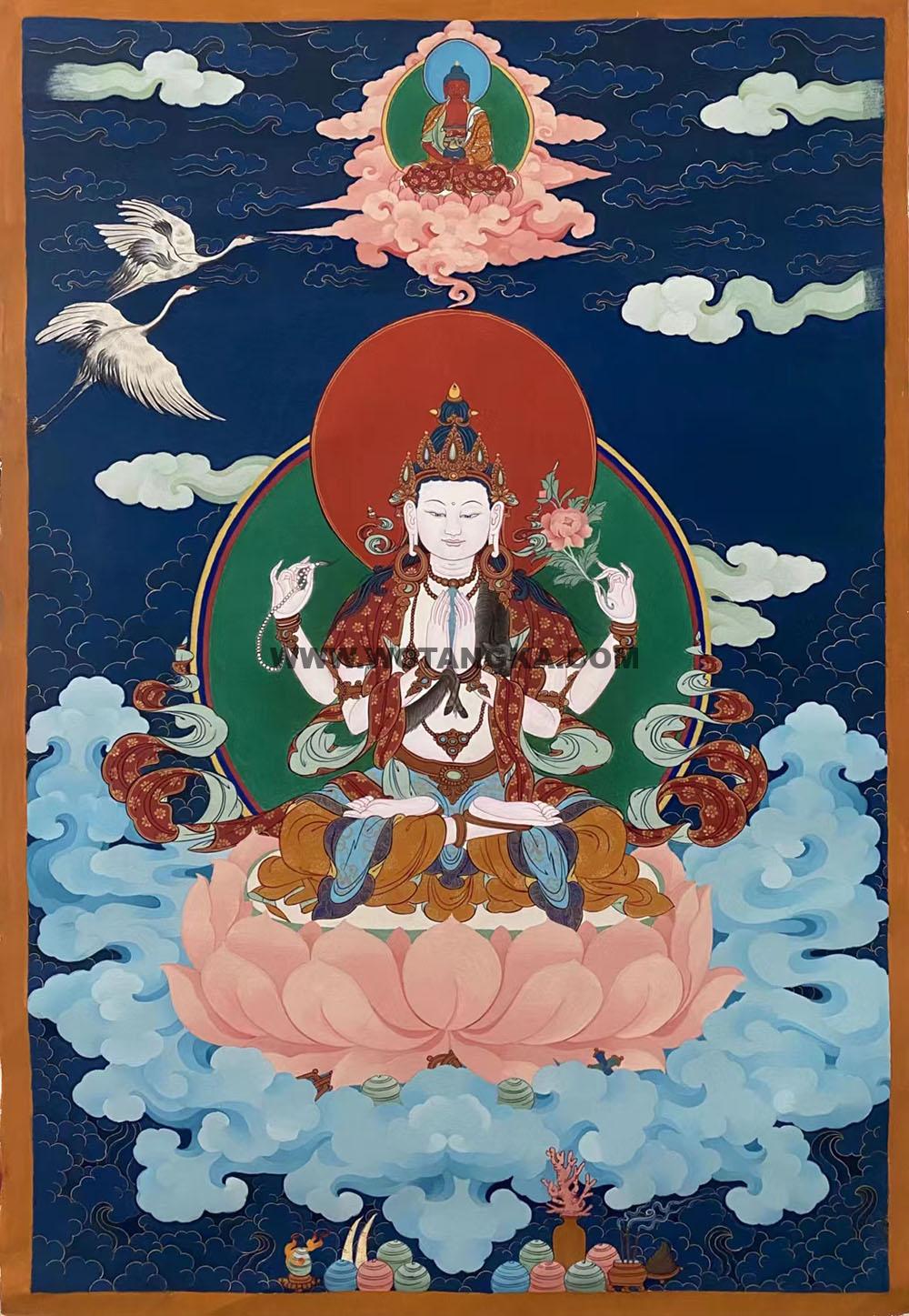 编号188-603415:彩绘唐卡-四臂观音(70*50CM左右) | 沃唐卡www.WoTangKa.com