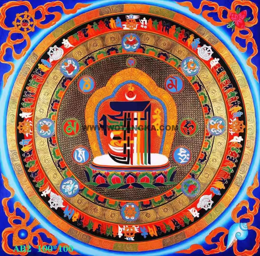 十相自在吉祥八宝六字真言经文坛城唐卡 【十相自在坛城】坛城,唐卡手绘布本。采用真金描线,天然矿石颜料着色晕染,画工细腻,精致,精品不要错过。