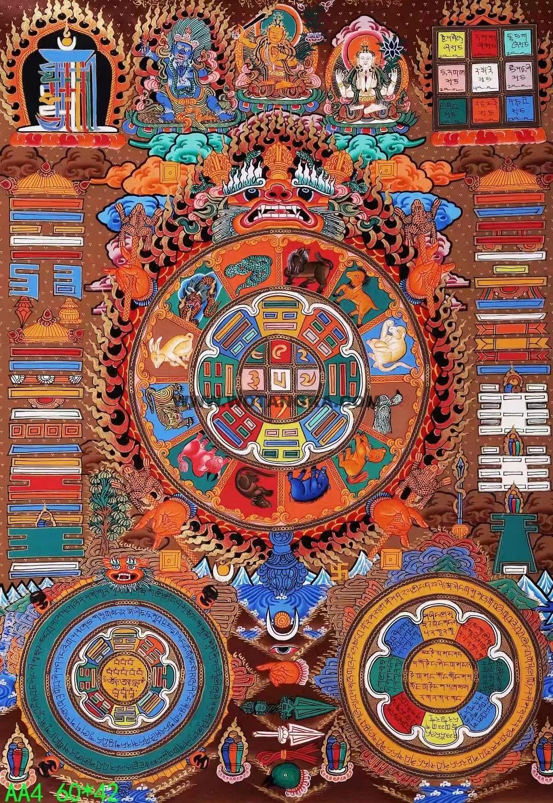 尼泊尔唐卡大师作品《九宫八卦》,作品采用24K真金描线,混合天然颜料纯手绘而成。作品主尊宝相传神,布图干净精美、画工非常的细腻,严格的遵照佛经的度量仪轨如法绘制,期待有缘人。