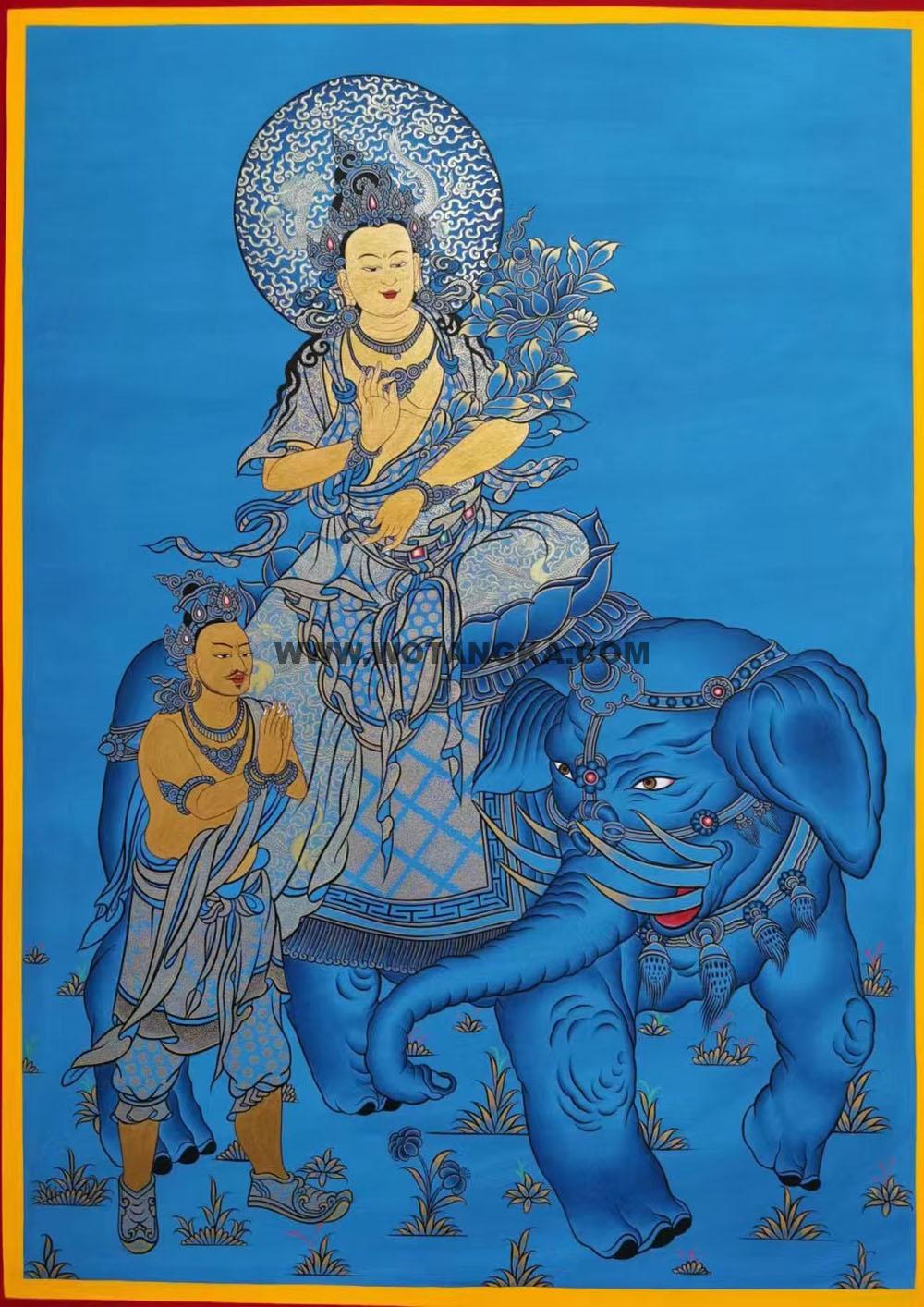 中国唐卡艺术作品中的【普贤菩萨】唐卡手绘布本,热贡知名画师东智加·画院出品,收藏供奉不要错过。作品主尊宝相传神, 采用天然矿石晕染,纯金描线,画工细腻,殊胜,精美、风格富丽,采用24K真金描绘,画工细腻,开脸殊胜,是一副难得一见的好唐卡作品。
