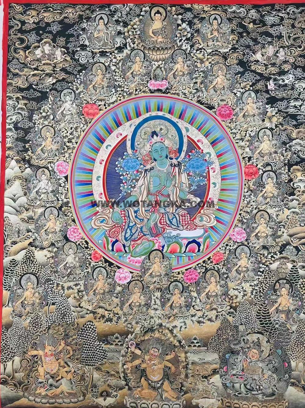 编号188-831203:黑金唐卡-绿度母·二十一度母(120*90CM左右) | 沃唐卡www.WoTangKa.com