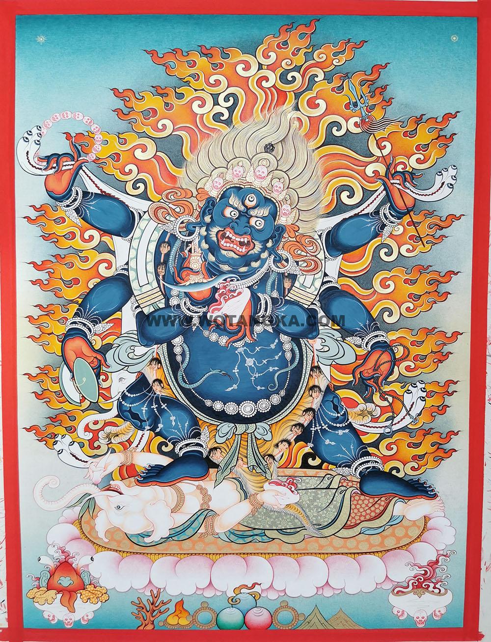 唐卡内容分类:玛哈嘎拉/大黑天/六臂大黑天/六臂玛哈嘎拉
