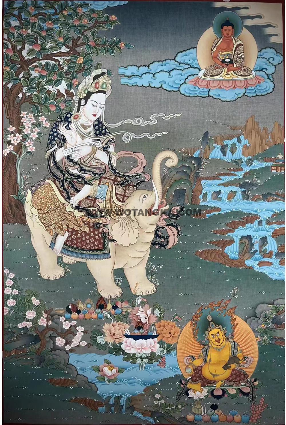 唐卡作品名称:骑象普贤菩萨大德财富供养图
