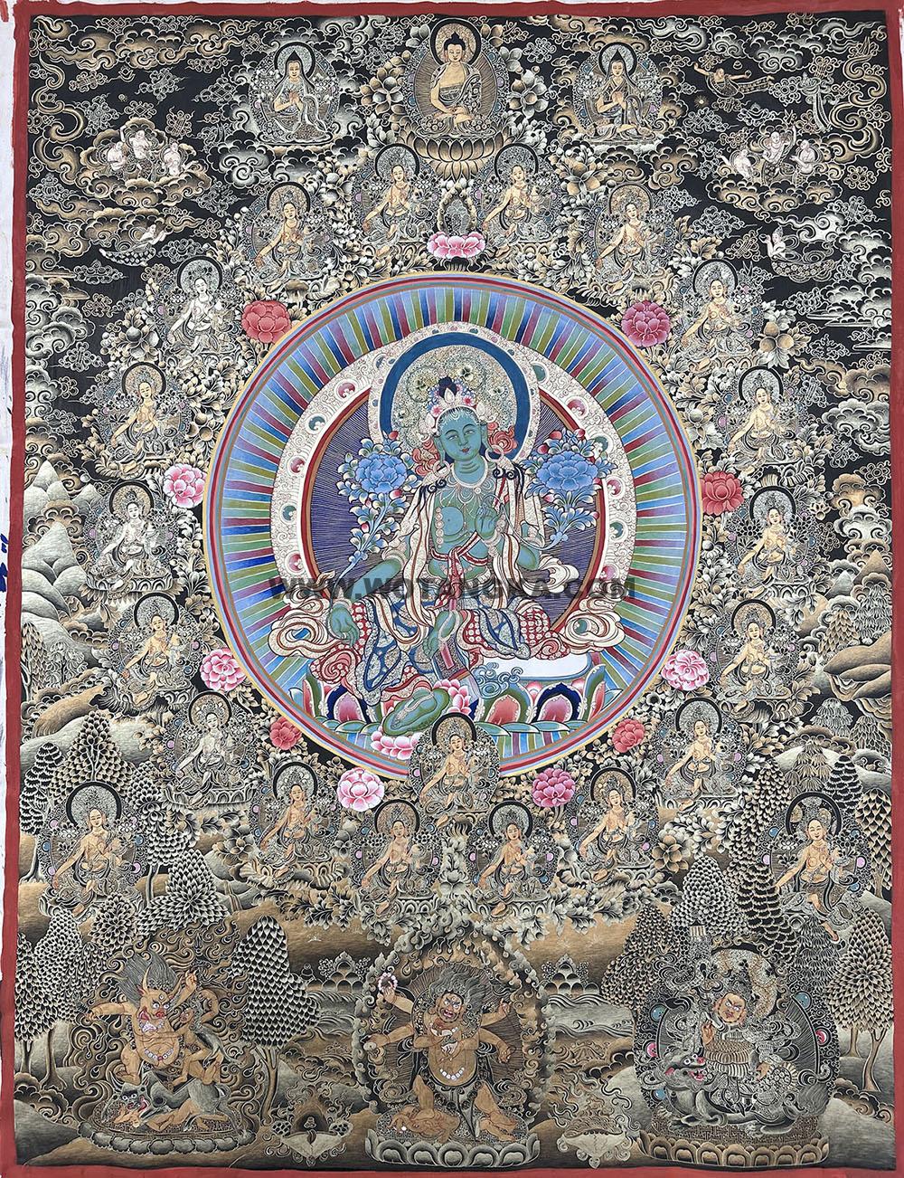 编号188-671346:黑金唐卡-绿度母·二十一度母(100*75CM左右)