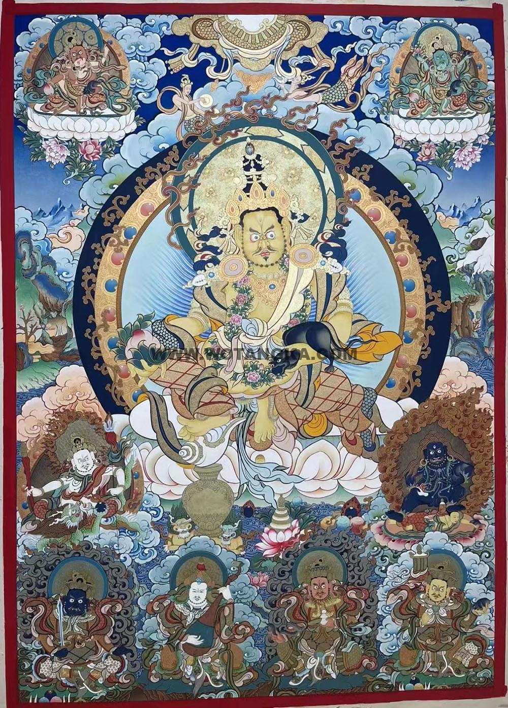 中国唐卡艺术作品中的【五方财神·四大天王】唐卡手绘布本,热贡知名唐卡画师拉藏·画院力作,收藏供奉不要错过。作品主尊宝相传神, 采用天然矿石晕染,纯金描线,画工细腻,殊胜,精美、风格富丽,采用24K真金描绘,画工细腻,开脸殊胜,是一副难得一见的好唐卡作品。