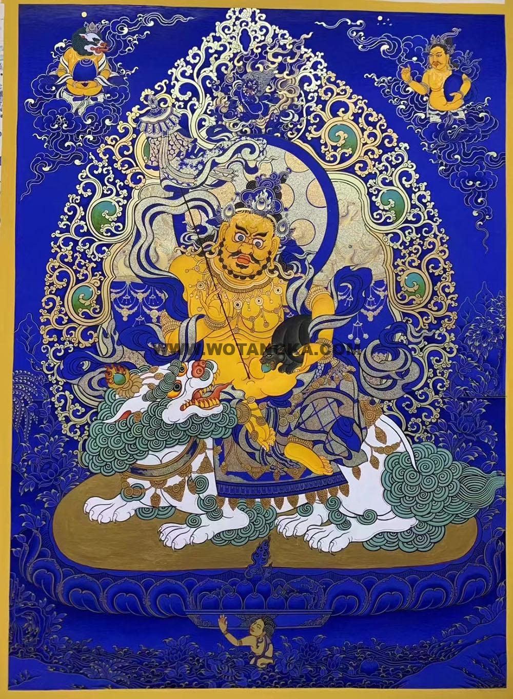 中国唐卡艺术作品中的【财宝天王】唐卡手绘布本,热贡知名画师格桑多吉·画院出品,收藏供奉不要错过。作品主尊宝相传神, 采用天然矿石晕染,纯金描线,画工细腻,殊胜,精美、风格富丽,采用24K真金描绘,画工细腻,开脸殊胜,是一副难得一见的好唐卡作品。