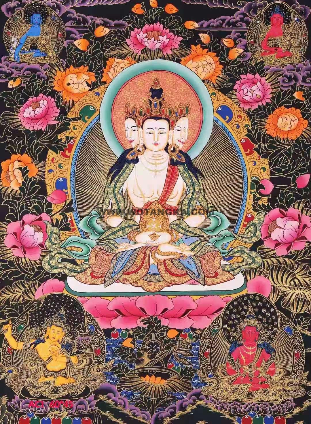 唐卡材质:白棉布、名贵矿石颜料、黄金等贵金属