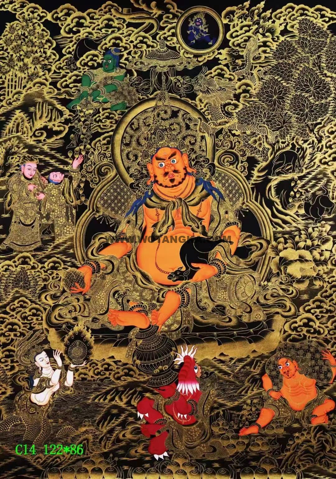 尼泊尔知名唐卡画师作品,纯手绘布本唐卡【黄财神】,作品采用24K真金金粉混合天然颜料纯手绘而成。作品主尊宝相传神。布图干净精美、画工非常的细腻,严格的遵照佛经的度量仪轨如法绘制,期待有缘人。