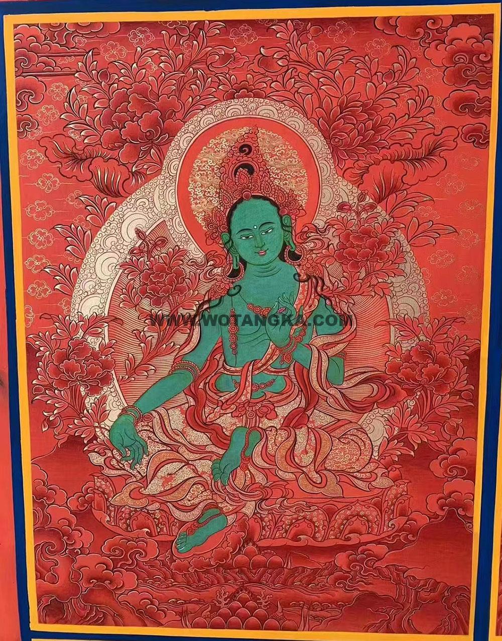 编号188-802358:红金唐卡-绿度母(60*45CM左右)