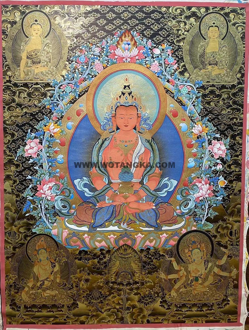 唐卡材质:白棉布、名贵矿石颜料、黄金等贵金属