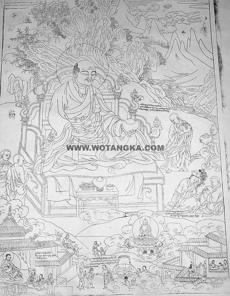 沃唐卡-唐卡白描线稿编号RD15546:德格巴宫·宾度罗跋啰惰阇(Pindola Bharadvaja)